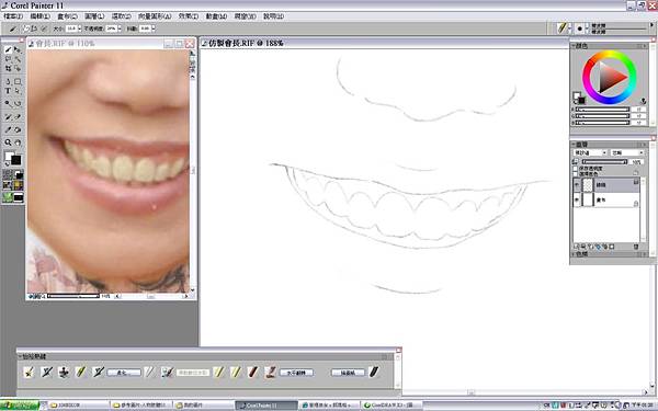 在繪製線稿時,如果遇到有需要畫牙齒的部份,切記牙齒與牙齦的線至少要比嘴唇的線還淡,而且千千萬萬別把齒縫畫上去這樣線搞才會美觀。