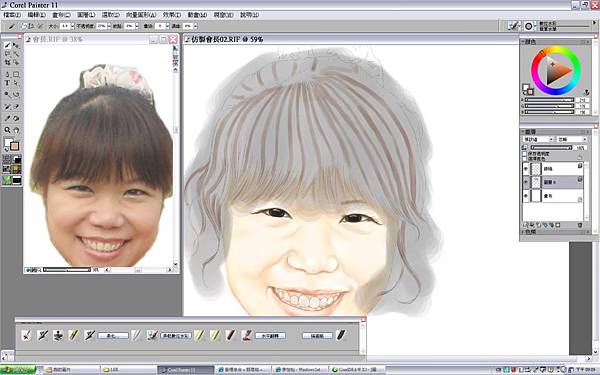 剛學PAINTER時,頭髮也是我的罩門,好險聖文老師教了一招好用的方法,現在分享給各位。