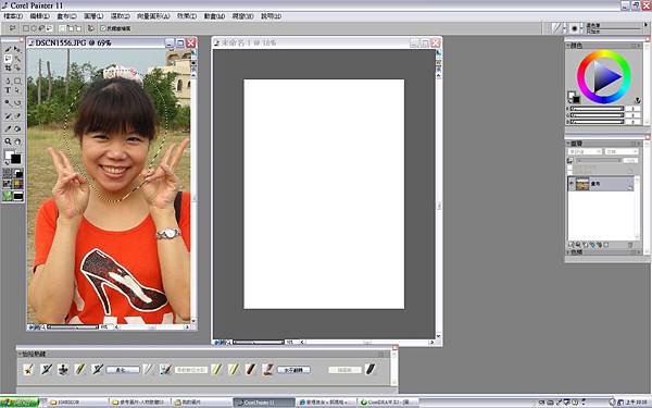 再將主要角色的參考圖丟進PAINTER,點選左邊工具列的矩型選取區>多邊形選取區,