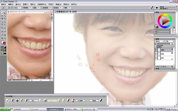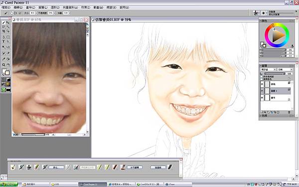 皮膚完成後接著描繪五官,五官繪製的詳細技巧請看我之前發過的文章(大家一起來畫似顏繪)裡面有詳細的說明。